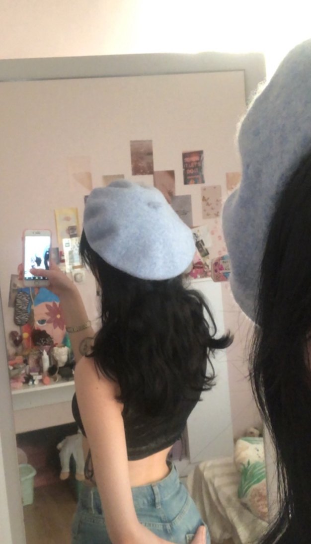 acık mavi ressam sapkasıııııı COK TATLI bu berelere bagımlıyken favori rengimdi