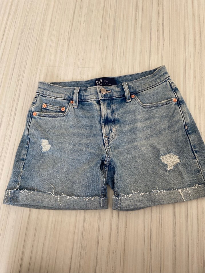 Açık mavi, düğmeli, bol kesim mini denim şort. Sokak stiline uygun ve günlük kullanıma ideal, hafif yıpranmış detaylı fotoğraflarlardan daha iyi durumda Orjinaldir