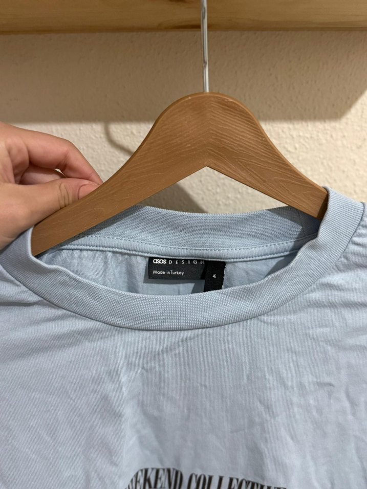 Pamuk kumaştan üretilmiş, mavi renkli, baskılı, uzun kollu, bisiklet yaka kadın tişörtü. Salaş kesimi ve midi boyu ile rahat bir günlük şıklık sunar.