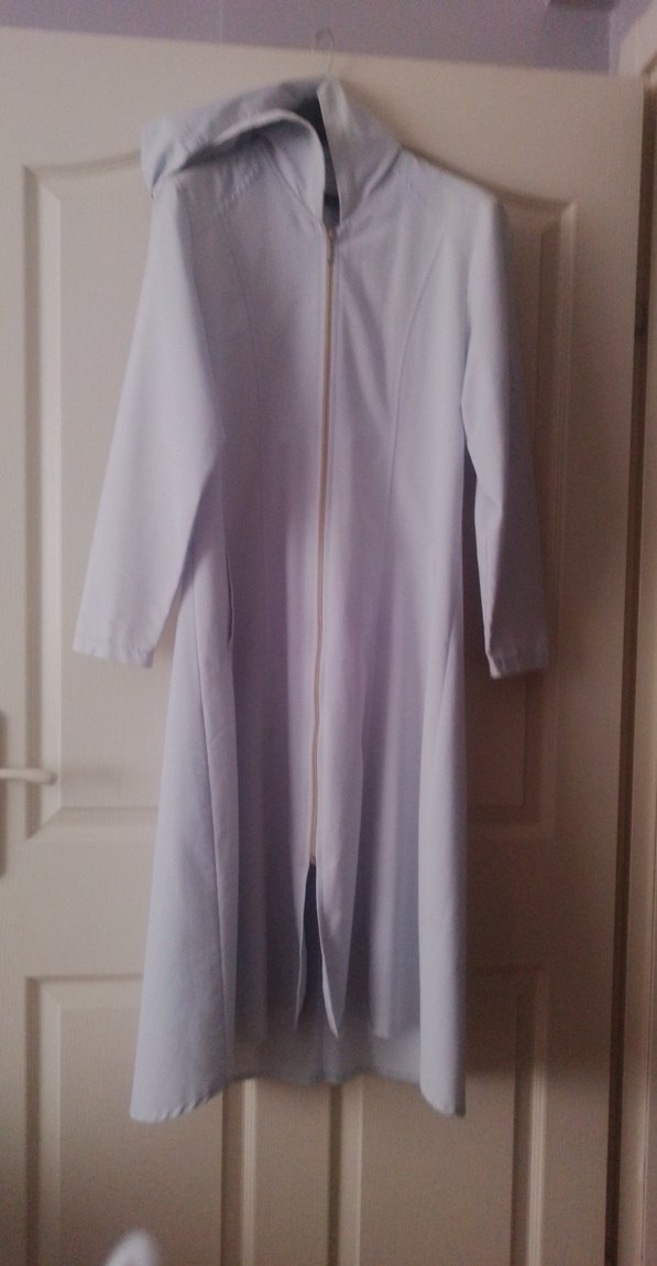 Kapşonlu açık mavi yumuşak doku keten kap.44 beden ama 42 uyumludur.