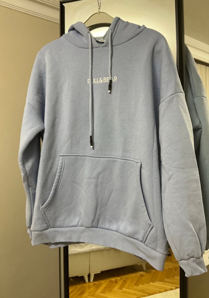 Açık mavi Kapüşonlu Rahat Kesim Sweatshirt
