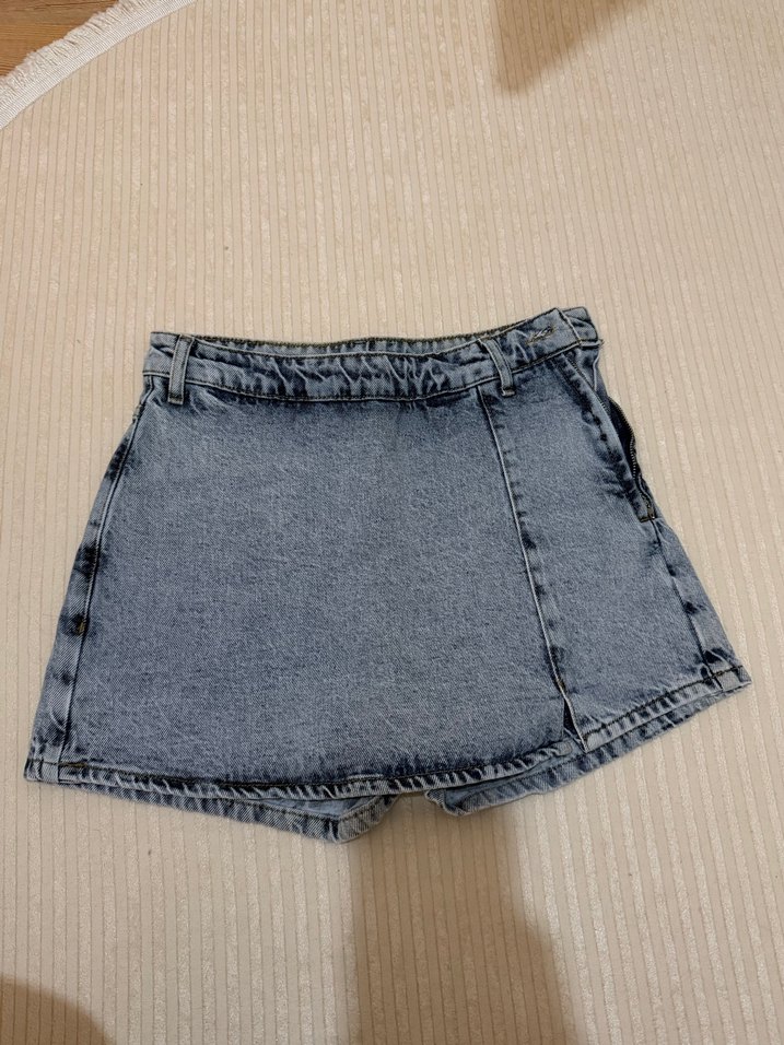 Gri renkte, bol kesim mini denim şort. Sade tasarımıyla günlük ve rahat sokak giyimine uygun, zahmetsiz şıklık sunar.