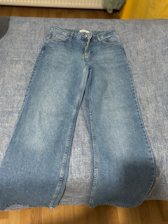 Açık Mavi Orta Bel Wide Leg Jean Pantolon