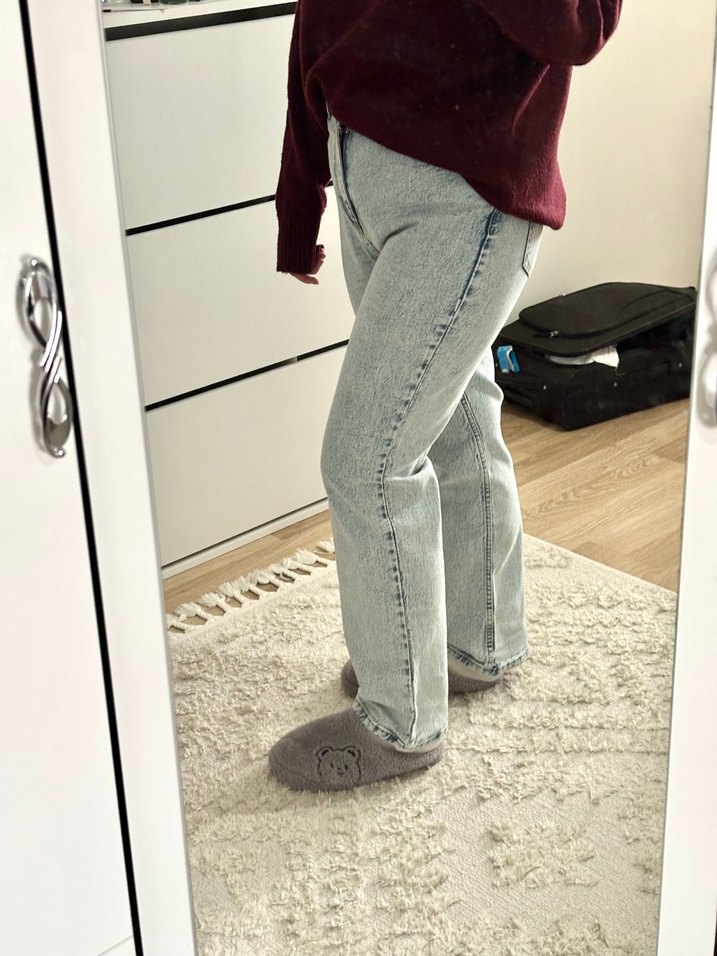 açık mavi bol kesim midi uzunlukta denim kadın jean, günlük kullanıma uygun rahat ve şık bir görünüm sunar. hiç giyilmedi