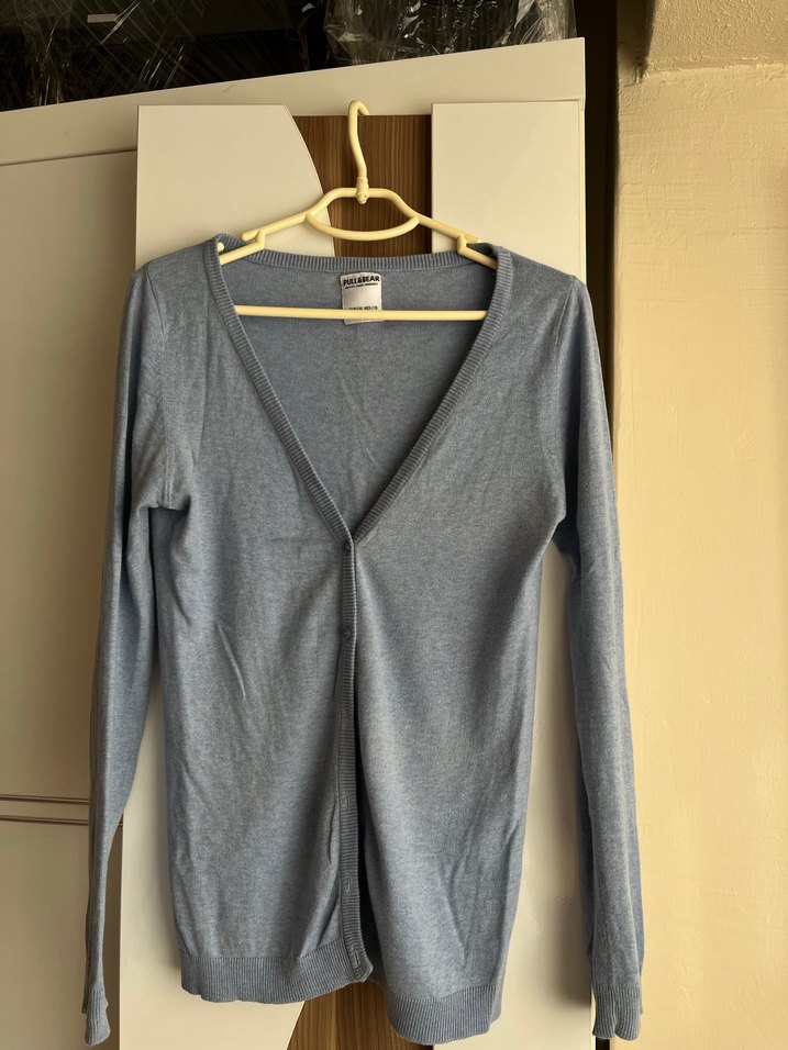 Açık mavi V Yaka Uzun Kollu Kadın Hırka