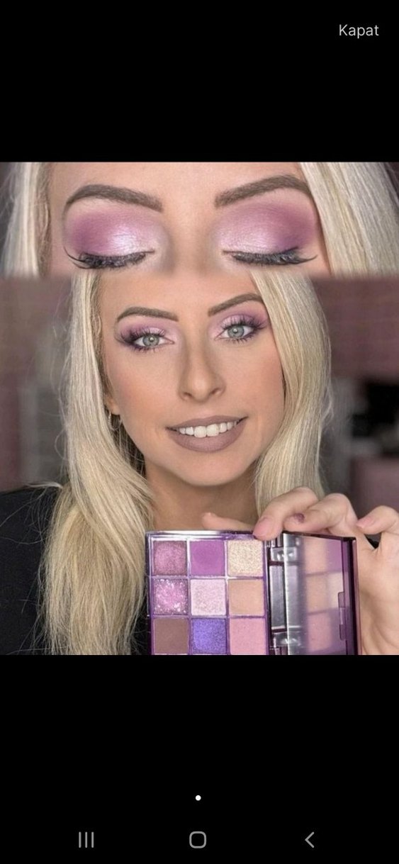 Çeşitli tonlarda açık mor far paleti, farklı göz makyajları için uygundur.