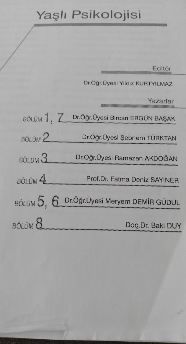 Açık Öğretim Yaşlı Bakımı Bölümü Yaşlı Psikolojisi
