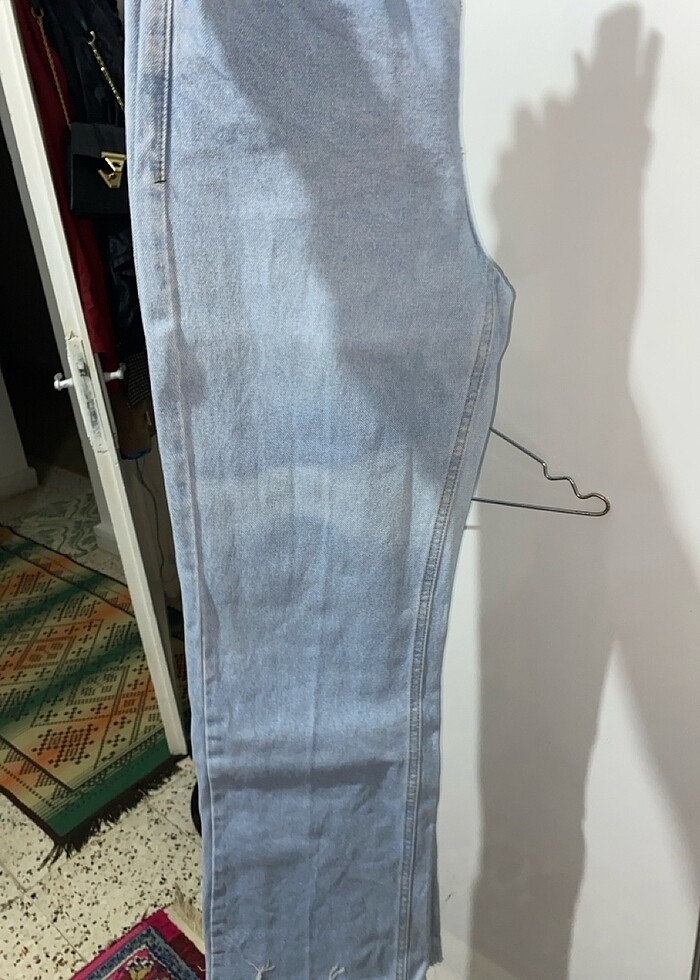 Ürün aşırı iyi mükemmel katlamaya pahalı olsa gerek üzerinde beyaz açık renkte leke oluşmuş ben düzeltemedim başka herhangi bir defosu yok 25 beden ama ben 26 beden olmama rağmen üzerime oturuyor rahatlıkla