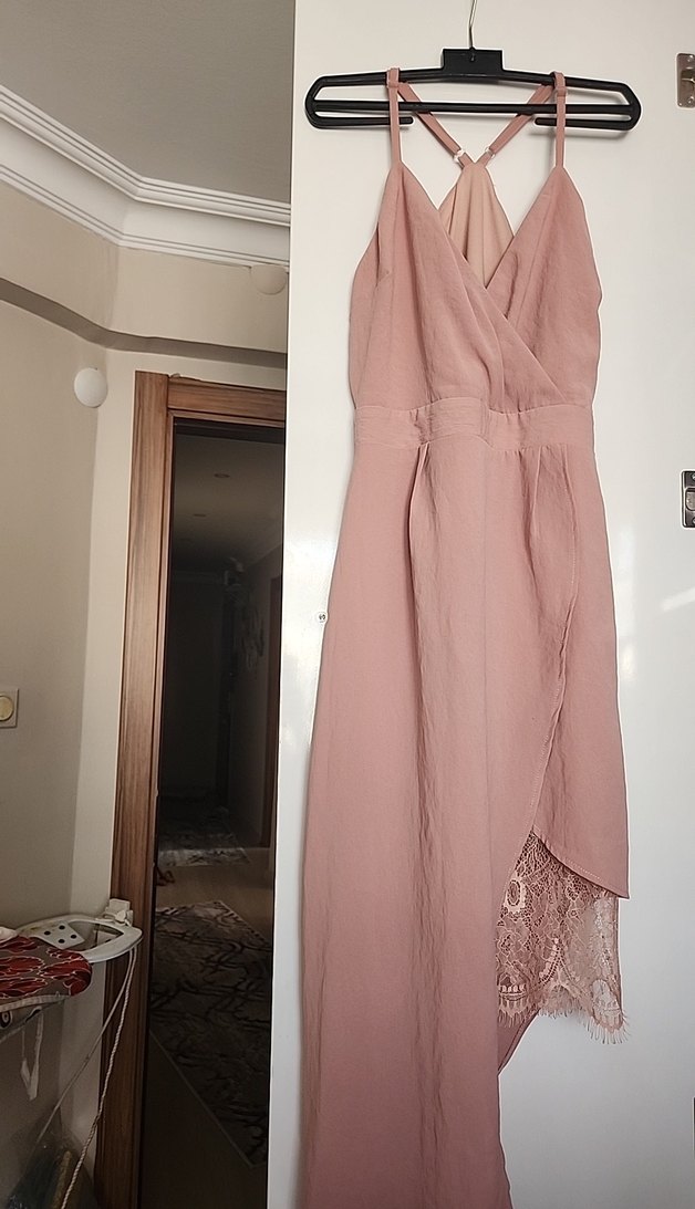 Açık pembe Drapeli Uzun Askılı Elbise