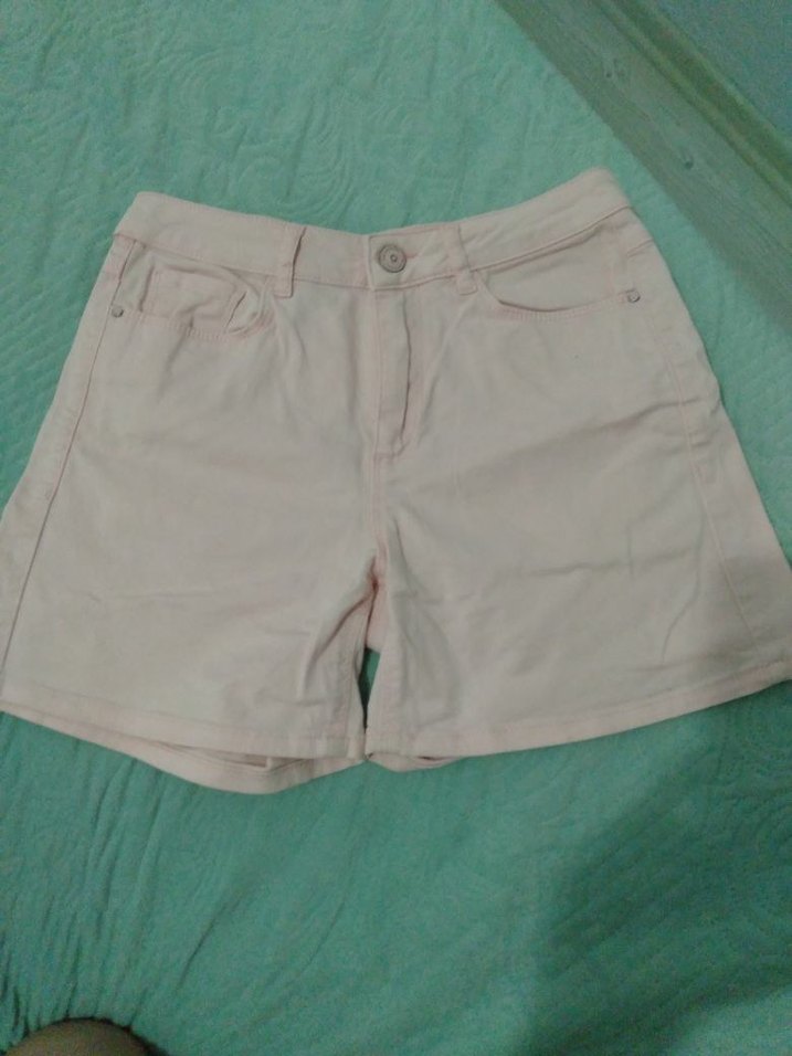 açık pembe renkte pamuklu mini boy, rahat kesim şort. Günlük kullanım için sokak stilinde, zahmetsiz şıklık sunar.