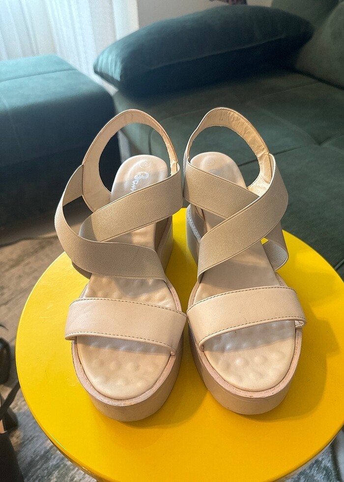 Açık renk dolgu topuklu sandalet