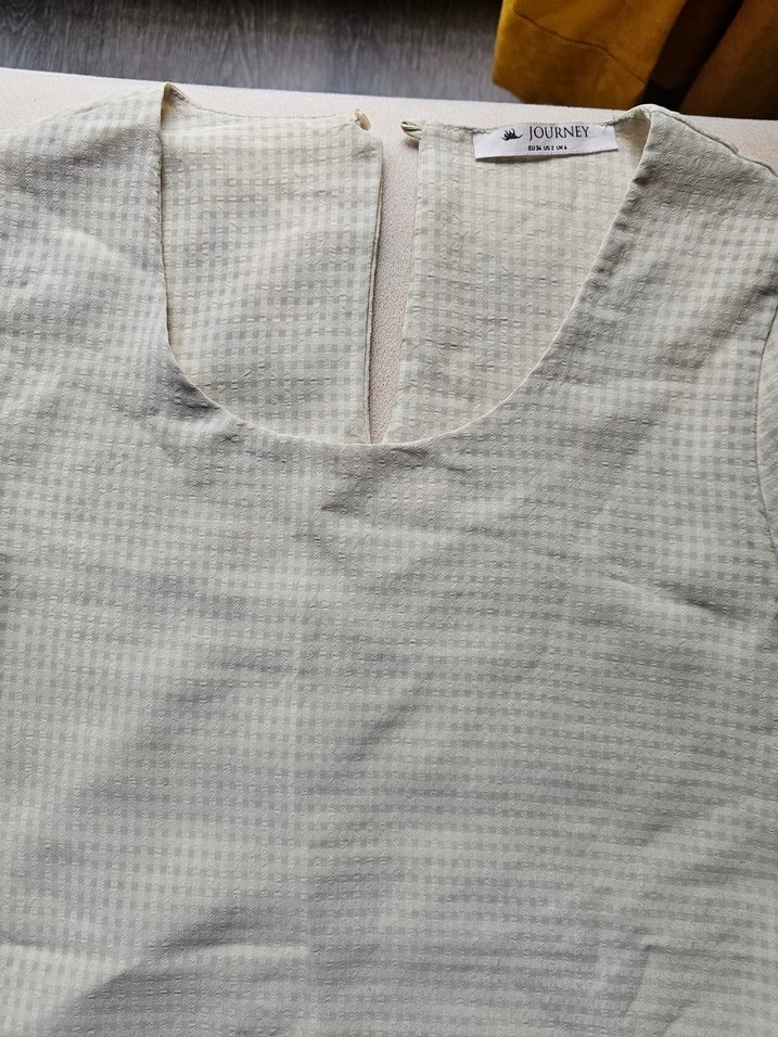 kayık yakalı açık sarı bluz. sarı ve beyaz renklerde, midi boyda, sade ve rahat bir tasarım.