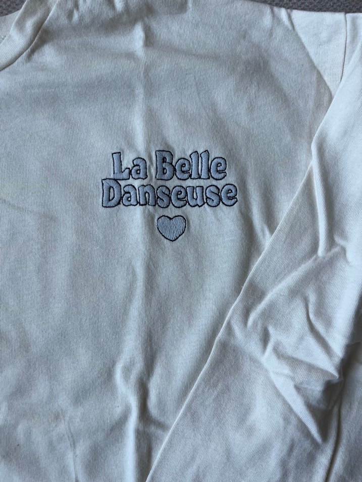 Pamuklu, uzun kollu, acik sari kiz cocuk tişörtü. Üzerinde 'La Belle Danseuse' yazısı ve küçük kalp baskısı bulunur. Rahat kesimiyle günlük kullanım için uygun. 4-5 yas bedendir.