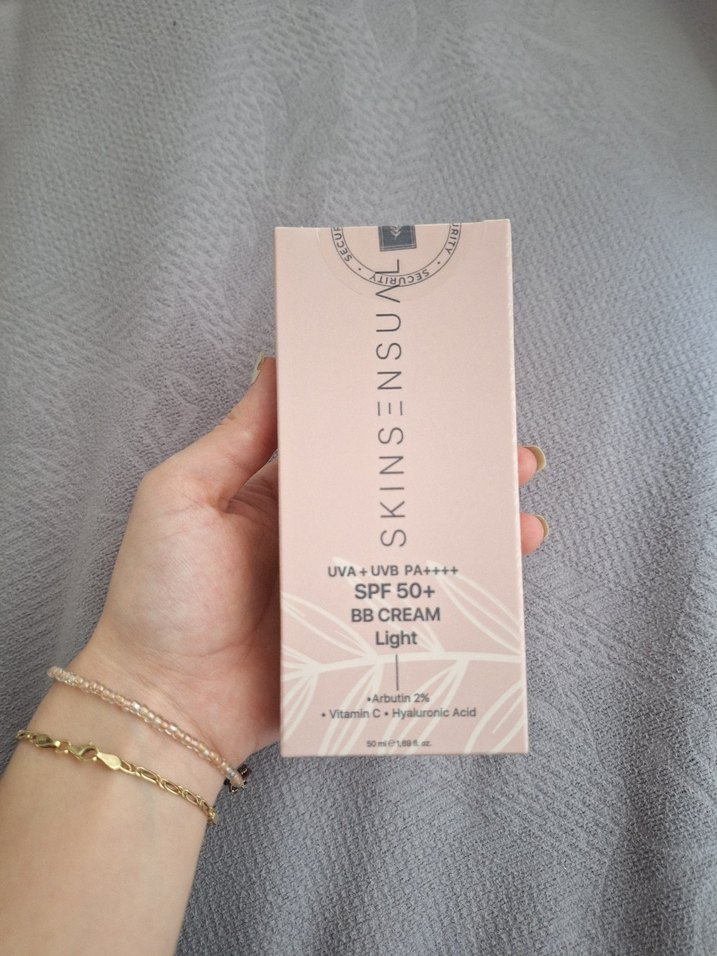 Açık ten rengi BB krem, SPF50+ koruma, UVA ve UVB filtreleri, Arbutin %2, Vitamin C ve Hyaluronik Asit içerir.