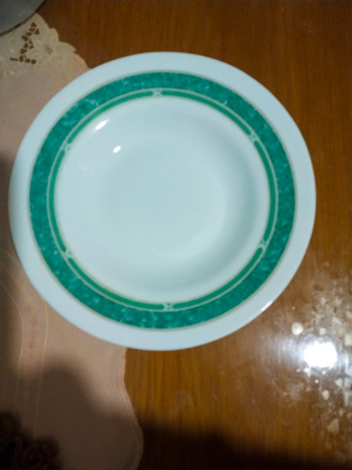 Yemek servisinde kullanılabilecek, açık turkuaz desenli ve pürüzsüz yüzeyli yemek tabağı. ️