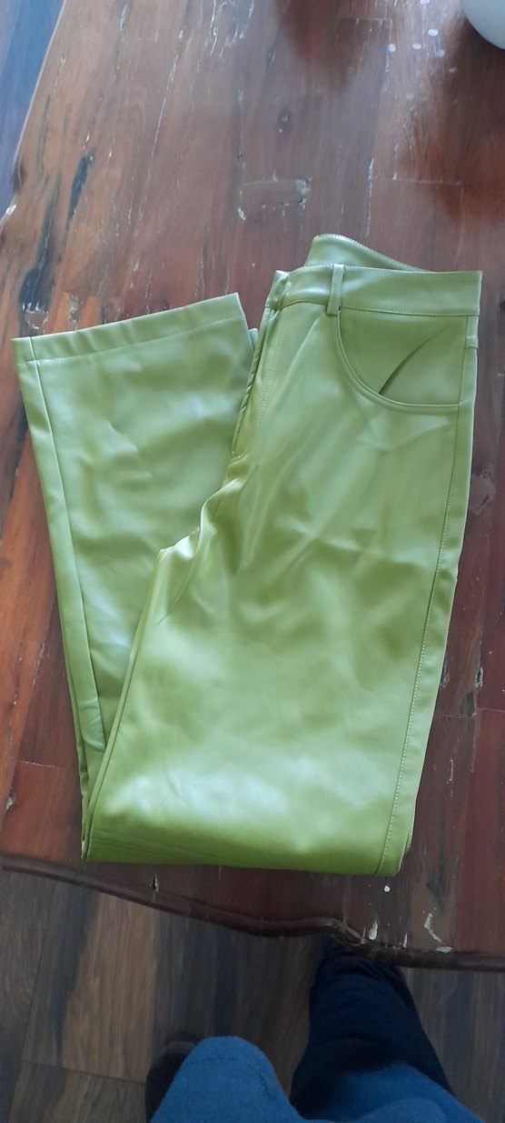 Deri pantolon yurtdısından alınmış açık yeşil çok rahat kalıp L beden zamansız deri pantolon