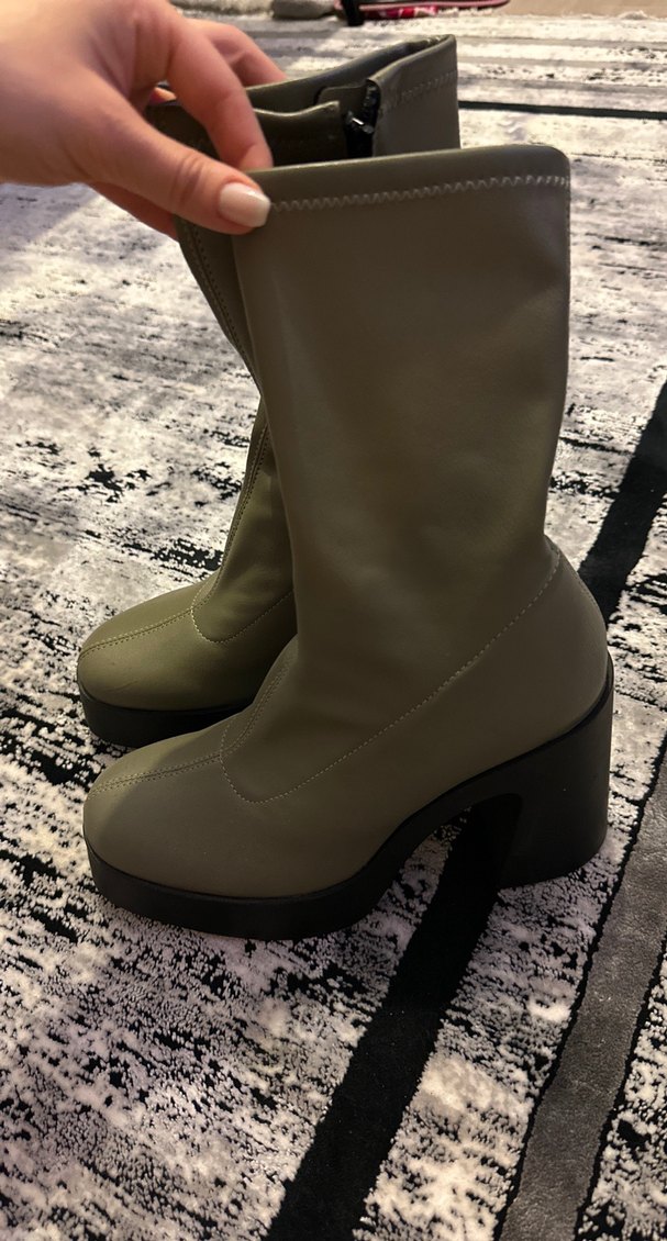 Açık yeşil Kadın Fermuarlı Blok Topuklu Bot