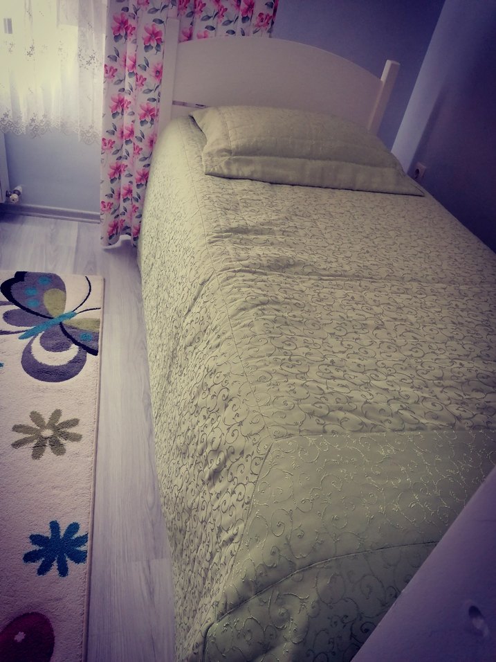 Yatağınıza yumuşak ve zarif bir görünüm veren açık yeşil nakışlı yatak örtüsü.