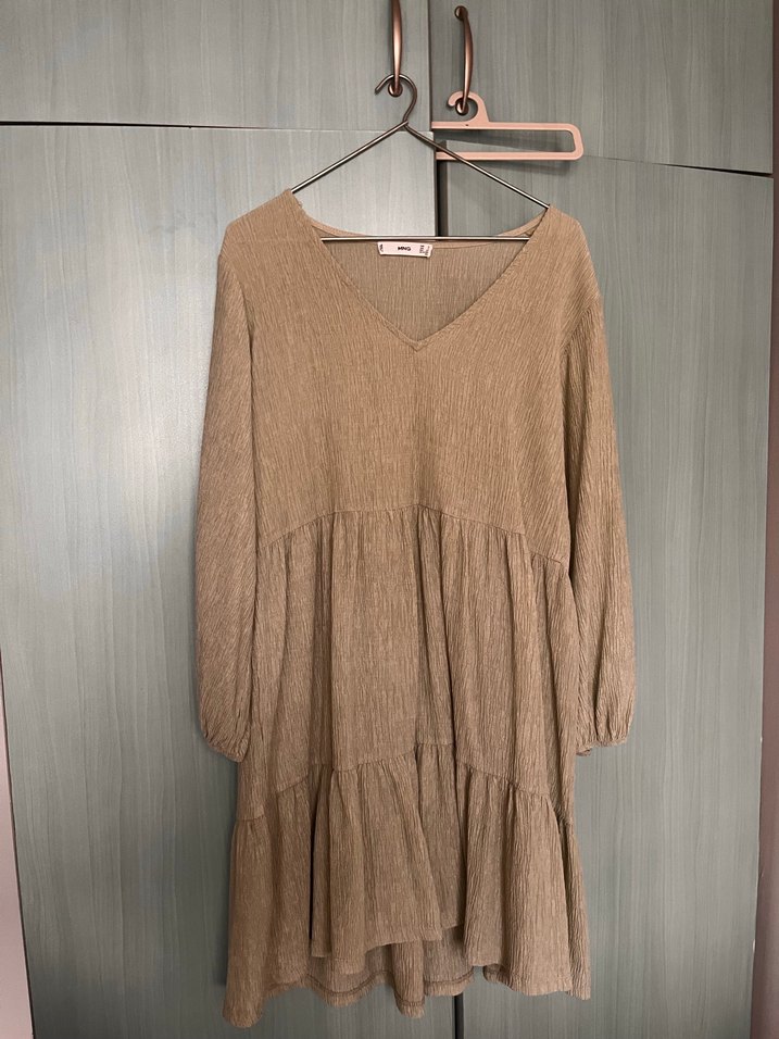 Açık yeşil S beden uzun kollu elbise 1 kere kullanıldı s beden olmasına rağmen L beden bile rahat giyebilir