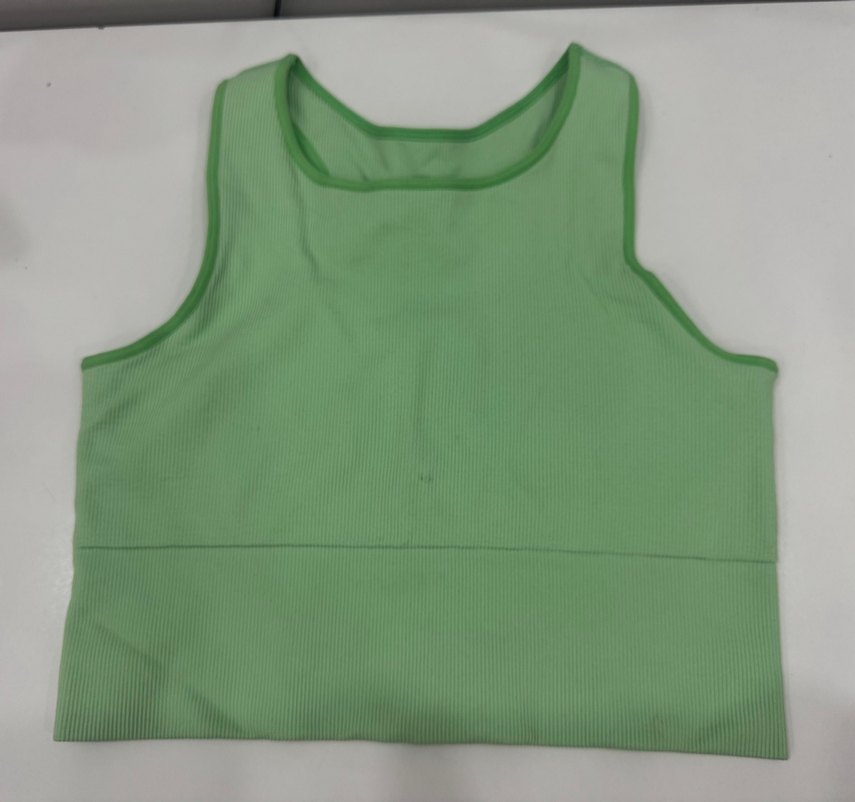 Kolsuz, yüksek yakalı ve vücuda oturan kesime sahip sprcu atleti. Yumuşak sentetik kumaştan, düz ve açık yeşil renkte, sokak stili için uygun.