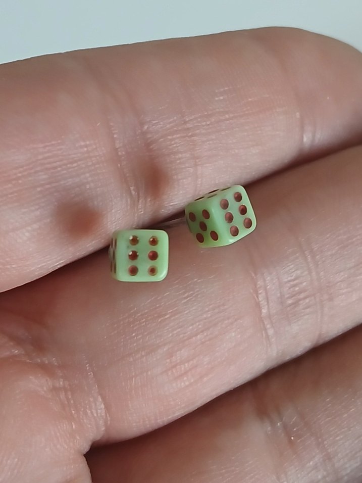 Açık yeşil renkli, zar şeklinde düğmeli kadın kol düğmeleri. Minimalist ve sade tarzıyla romantik akşamlar için uygun.