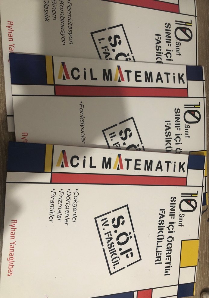 Ayhan Yanaglıbaş tarafından hazırlanan 10. sınıf matematik soru fasikülleri; çokgenler, prizma, piramit, fonksiyonlar, permütasyon ve dörtgenler konularını içerir. Çokgenlerin olduğu fasikülden bir iki sayfa çözüldü onları da sildim gerisi tertemiz.