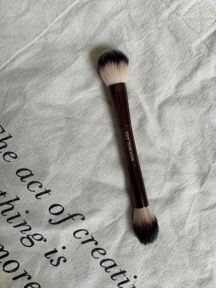 Hourglass çift uçlu makyaj fırçası, her iki ucunda yumuşak bej kıllar ve hassas uygulama için koyu renk sap içerir. Yurtdışı sephoradan alındı, hediye geldi çok az kullanıldı fakat işden ayrıldım çok fazla paraya ihtiyacım olduğundan satıyorum
