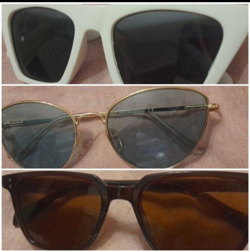 3 adet Parlak bej renkli kadın gözlükleri, klasik ve karşı kültür tarzlarında, zahmetsiz şıklık sunan çeşitli çerçeve modelleriyle.