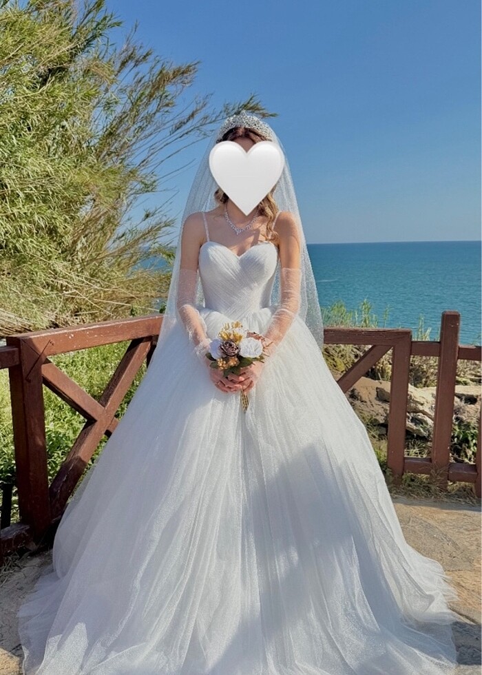 Sadece gerçekten 1 kere giyilen bişey. Yırtık vs bişey yok. Eldiven, duvak, taç ve gelinlik beraberdir. Hepsi beraber gönderilecektir. Prenses gelinlik modelim simli tül askılarını isterseniz kullanmayabilirsiniz. Hafif bir gelinliktir kabarık gelinlik istiyorsanız tam istediğiniz model hem yormayan hem kabarık hemde hafif. Özel tasarım