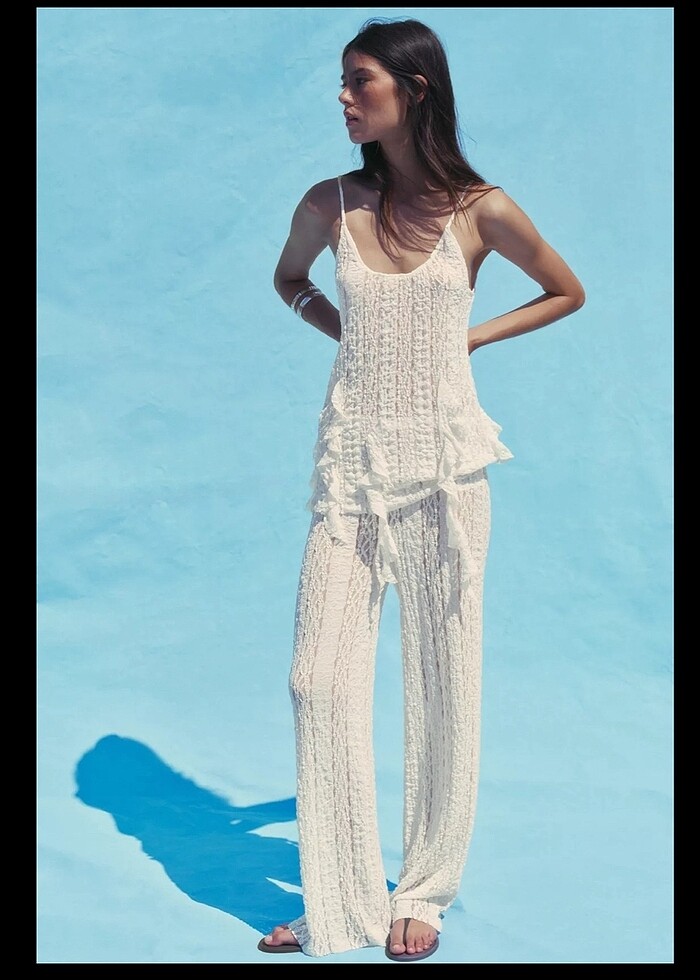 Hiç giyilmedi etiketli bana uzun geldi Kırık beyaz dantel esnek kumaş