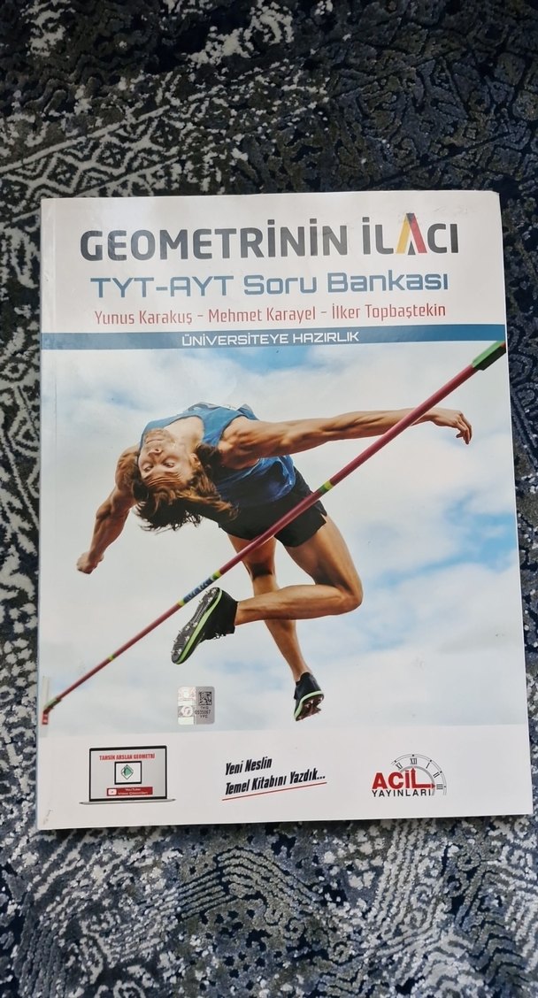 Yunus Karakus, Mehmet Karayel ve İlker Topbaştekin'in yazdığı Geometrinin İlacı, TYT-AYT üniversiteye hazırlık soru bankasıdır. İçin ve dışı temiz sadece ilk 16 sayfa kullanıldı. 2024-2025 basım yılıdır.