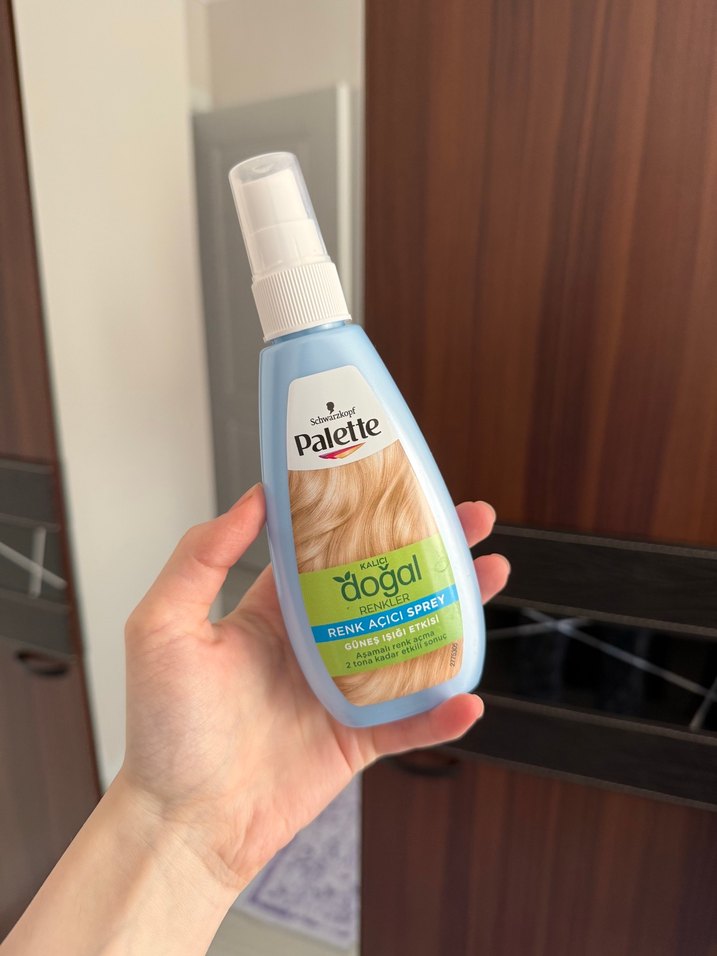 HİÇ KULLANILMADI. Palette Doğal saçlar için güneş ışığı etkisiyle renk açıcı sprey. Saçı nazikçe açar ve doğal tonlarda kullanılır.