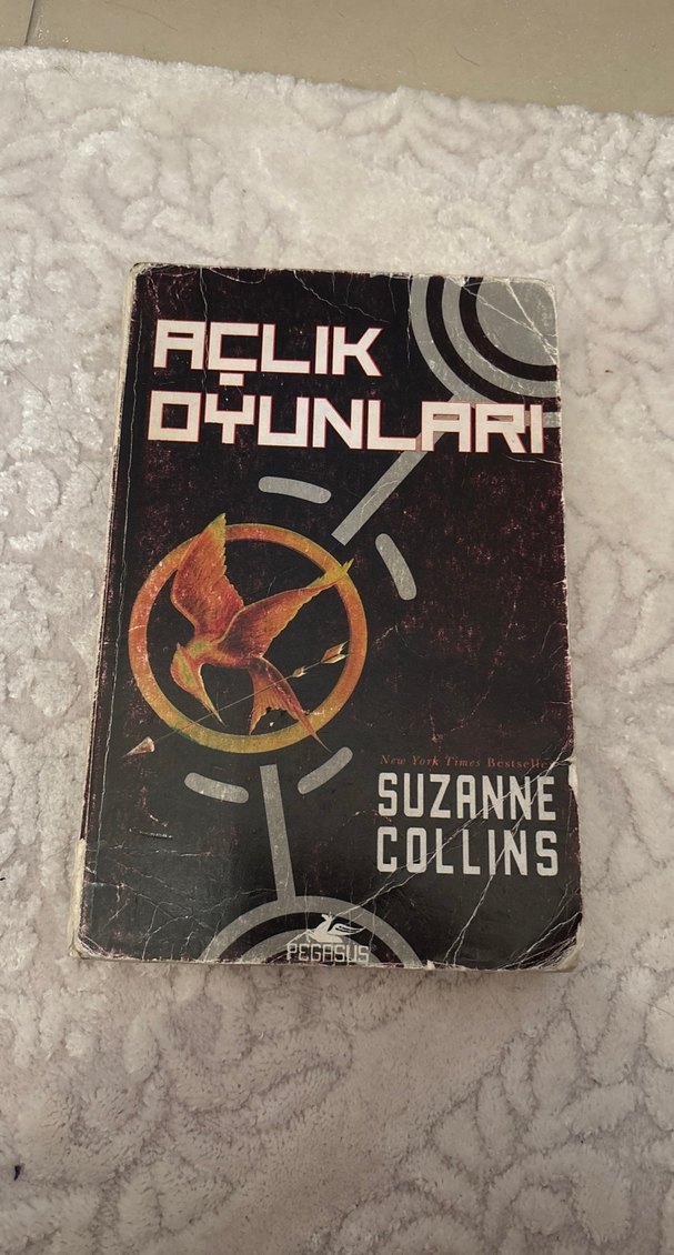 Suzanne Collins'in Açlık Oyunları adlı romanı, Pegasus yayınevi tarafından basılmış, kapakta simgesel bir bülbül yer alıyor. Kitap biraz yıpranmış olduğu için fiyatı çok uygun tutacağım