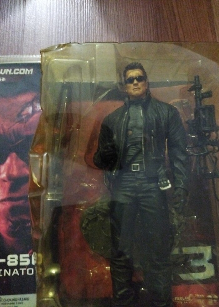 İki tane Terminator 3 T-850 Mcfarlane marka, Tabutlu olanın bağlantı yeri koptu ama yapıştırırsa taşıyor tabutu, aksesuarları eksiksiz, Reel Toys marka Hellraiser Series One da eksiksiz, hepsinin kutusu açık hafif kutuları deforme olduğundan fiyat uygun tutuldu. Tek tek alım için fiyat sorunuz.