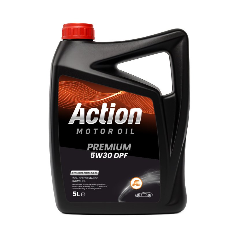 Action Motor Oil Premium 5W30 DPF 5 litrelik ambalajda yüksek performanslı motor yağıdır, motor koruması ve verimliliği sağlar.
