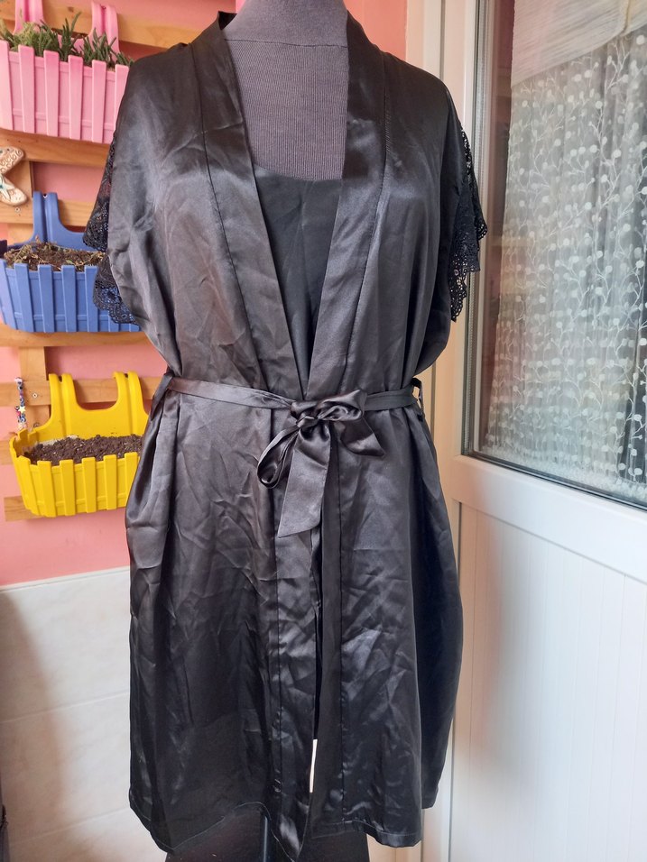 ACTUEL Saten 2’li Gecelik Takımı (S Beden) Şık saten kumaşı ve dantel detaylarıyla hem zarif hem de konforlu bir takım. Sabahlık ve kısa gecelikten oluşur. Hem evde rahatlıkla kullanılabilir hem de özel geceler için idealdir. Detaylar: ✨ Üst (Sabahlık): • Göğüs (iki koltuk arası): 56 cm • Omuzdan etek ucu: 94 cm • Kol detayları: Dantel işlemeli • Kuşakla belden bağlanabilir ✨ İç (Kısa Gecelik): • Göğüs (iki koltuk arası): 45 cm • Koltuk altından etek ucu boy: 56 cm • Askılı model • Marka: ACTUEL • Beden: S • Kumaş: Saten • Renk: Siyah • Durum: Temiz, çok az kullanılmış #actuel #geceliktakımı #satentakım #siyahgecelik #sabahlık #kadınmoda #evstili #danteldetay #ikinciel