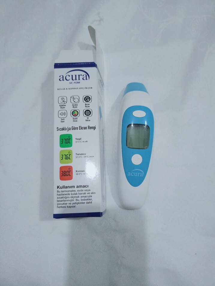 Acura LC309 dijital ateş ölçer, sıcaklığa göre renk değiştiren ekranıyla vücut ısısını gösterir. Kolay kullanımlı ve doğru ölçüm sağlar. ️