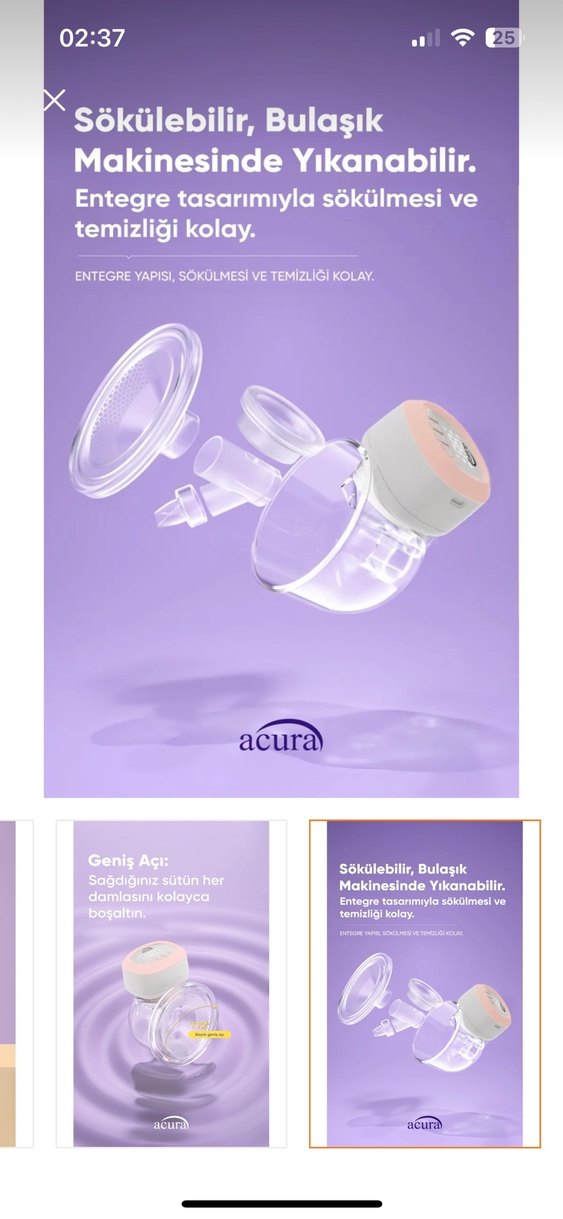 Acura pembe göğüs pompası, entegre yapısı sayesinde kolayca sökülebilir ve bulaşık makinesinde yıkanabilir. Geniş ağız yapısı sütü kolayca boşaltmanızı sağlar. Eller serbesttir. 4 adet flanşı ve kutusu ile beraber gelecektir. 2-3 defa kullanıldı