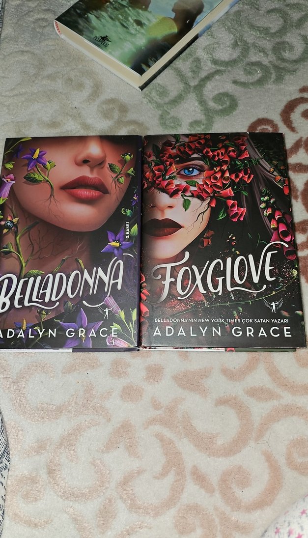 Adalyn Grace'in Belladonna ve Foxglove adlı romanlarından oluşan set. Karanlık, gizemli portreler ve çiçek detayları içerir.