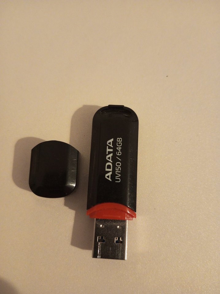 ADATA UV150 USB bellek, 64GB depolama kapaseti, siyah plastik gövde ve çıkarılabilir kapak ile birlikte gelir. Güvenilir veri aktarımı sağlar.