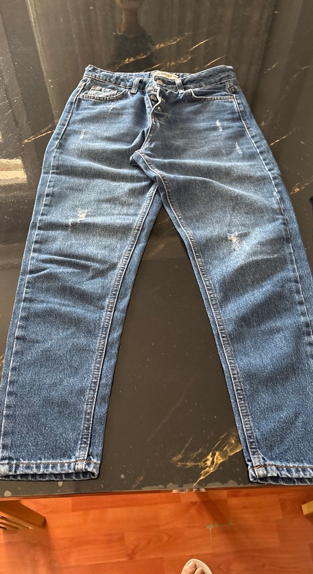 Kadınlar için mavi kot pantolon, normal boy ve regular fit. Belde tokalı detay ve hafif parlak yüzeye sahip, günlük rahat kullanım için uygun. Hiç bir deforme yoktur orijinaldir az ve temiz kullanıldı
