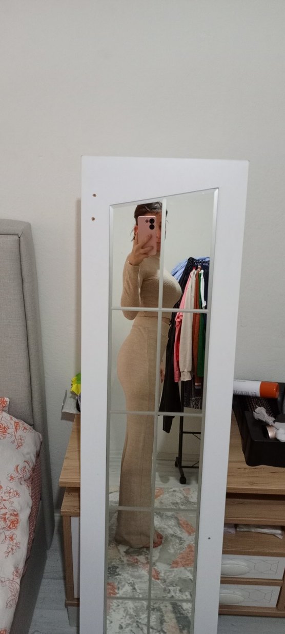 Bej renkte, biraz iç belli ediyor çok az kullanılmış kusuru hatası olmayan crop pantolon takım