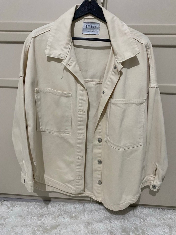 Addax markalı beyaz pamuklu ceket, düğmeli ve kesik yaka detaylıdır. Salaş kesimi ve uzun kolları ile günlük rahat kullanıma uygundur. bir hadarı yok yenidir