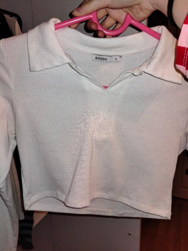 Addax markalı, pamuk kumaştan yapılmış, beyaz renkli, V yakalı, uzun kollu, düğmeli ve fitted kesime sahip kız çocuk polo tişörtü. ben daralttırdım altını biraz xs olan alabilir