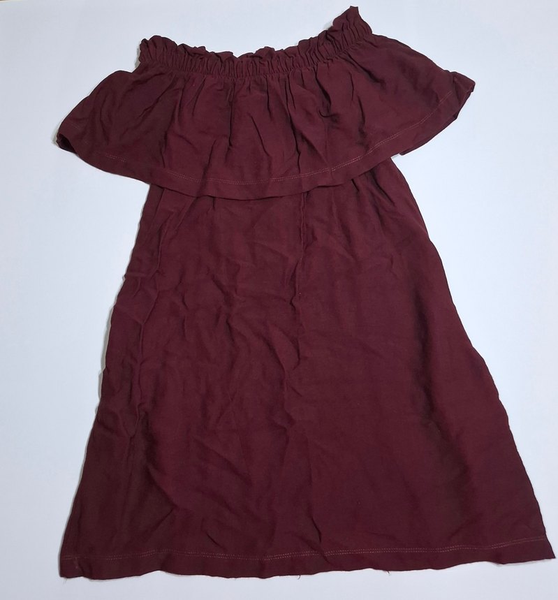 Sayılı giyildi. Cepleri var çok rahat bir elbise. Bordo renkli, straplez ve fırfırlı detaylı midi uzunlukta keten elbise. Salaş kesimi ve kolsuz yapısıyla minimal bohem tarzını yansıtır.