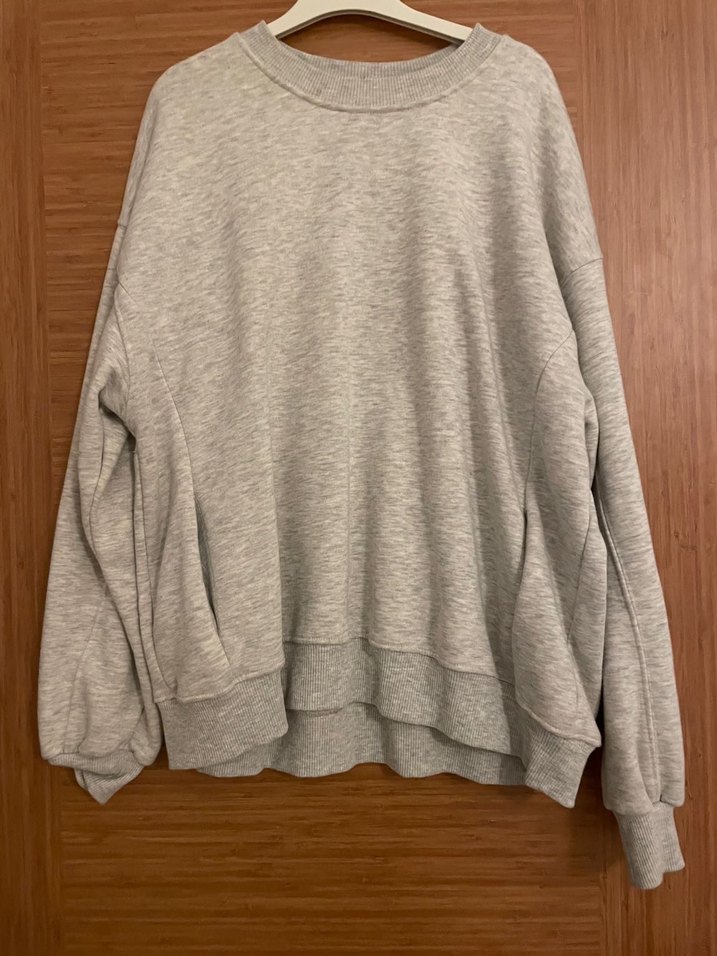 Gri renk, bisiklet yaka ve uzun kollu salaş kesim sweatshirt. Yumuşak keten kumaştan, günlük kullanıma uygun rahat ve şık bir parça.
