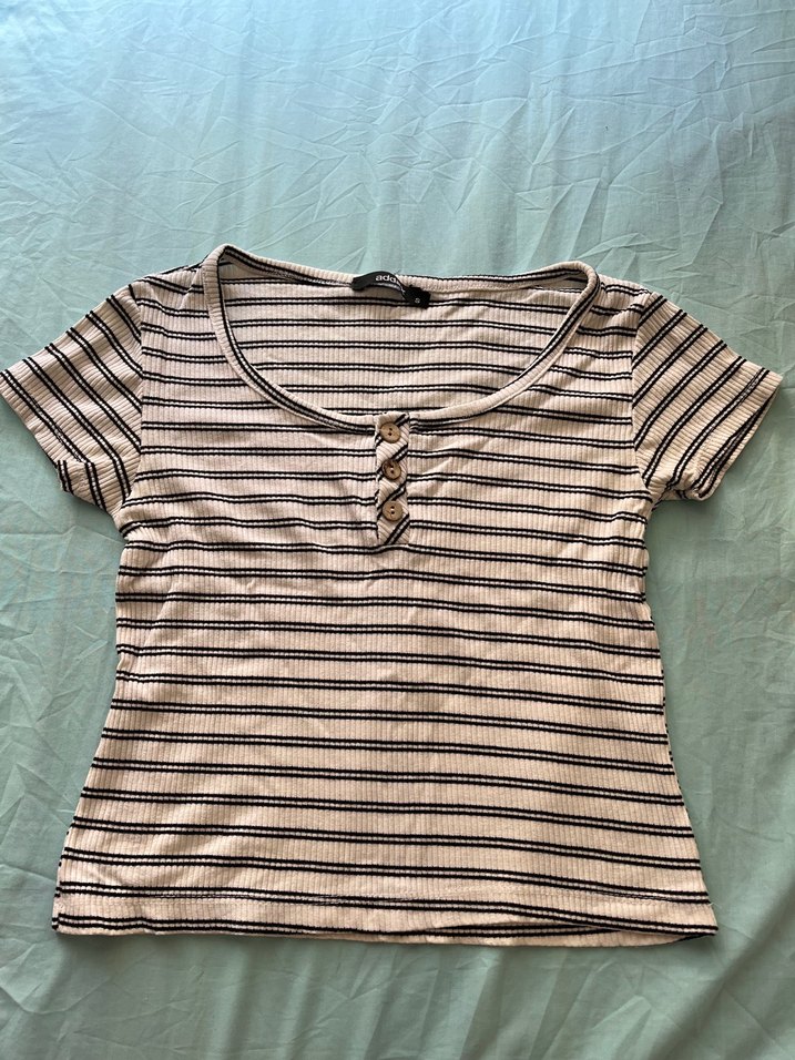 Addax çizgili düğmeli bluz hiçbir defosu yok
