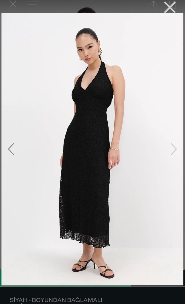 Addax Dantel Detaylı Siyah Uzun Strappy Elbise