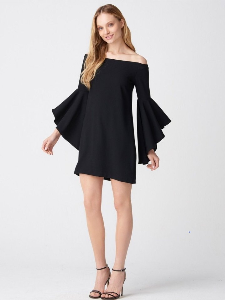 Addax Düşük Omuz Kolu Volanlı Elbise
