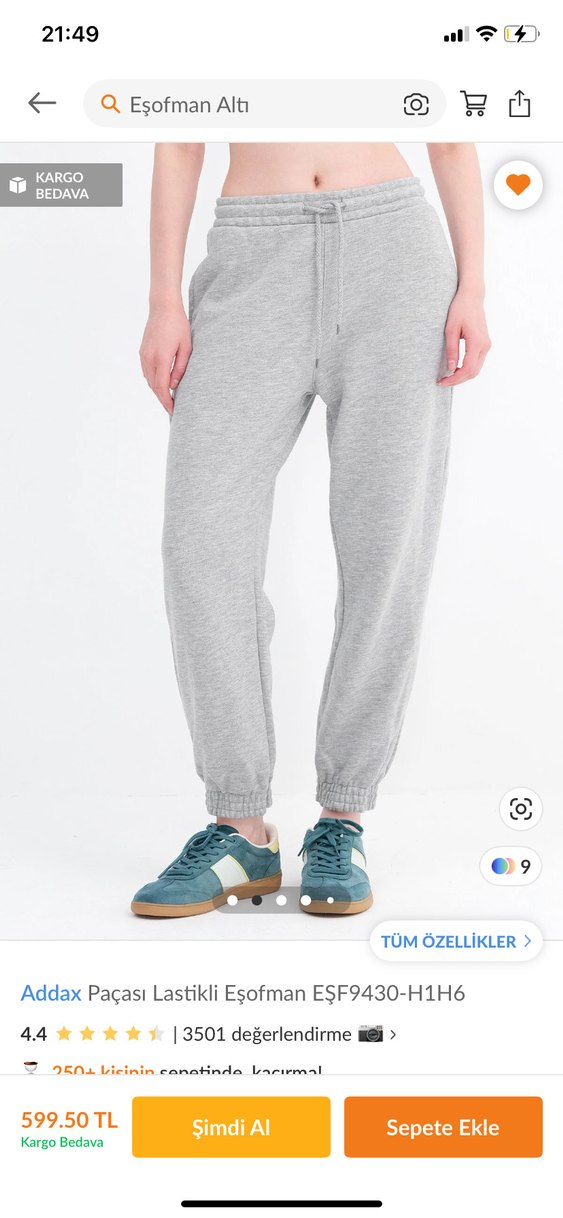 Addax gri, lastikli paçalı, yumuşak ve rahat kumaştan üretilmiş bol kesim kadın eşofman altı, spor ve günlük kullanım için uygun. ♀️(2 tane var ipli ve ipsiz)